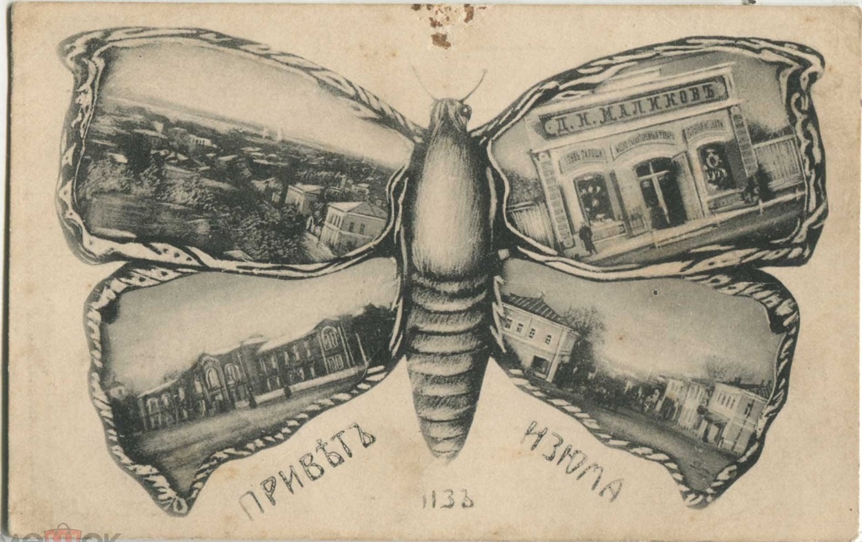 Автор поста в паблике Мандуймо Придінців'ям - Александр (Etnografo Donetz). Он рассказал Свои, что эти открытки-бабочки периода Российской империи, которые он собирает из разных источников в сети. Дату изготовления на открытках тогда не ставили, и можно сориентироваться только по почтовым штампам.