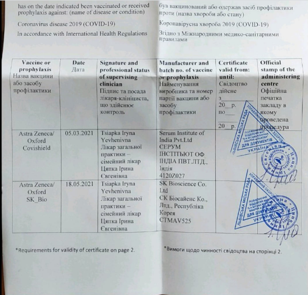 Міжнародне свідоцтво про вакцинацію та сертифікат вакцинації - це різні речі?