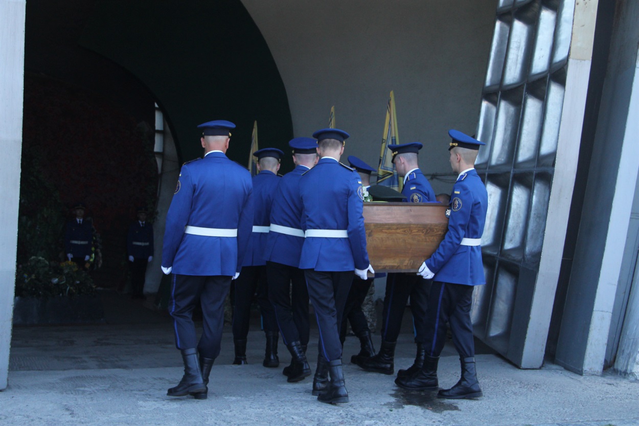 Елла Краснобриж приймає прапор України на прощанні із чоловіком Ігорем