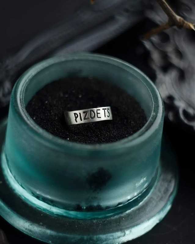 Наступна прикраса — каблучка з написом “PIZDETS”.