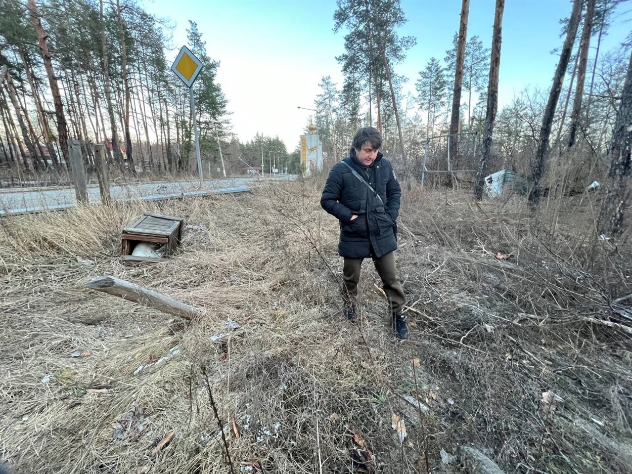 Ігор пропонує прогулятися парком, щоб показати залишки кафе та роками будованого бізнесу. Сам йде перший. На наше питання, чи безпечно ходити лісом та високою травою — посміхається. Говорить, що ходив вже тут десятки разів. Ми йдемо за ним: він дивиться перед собою, наша команда, що приїхала з Києва — собі під ноги, і дуже пильно.