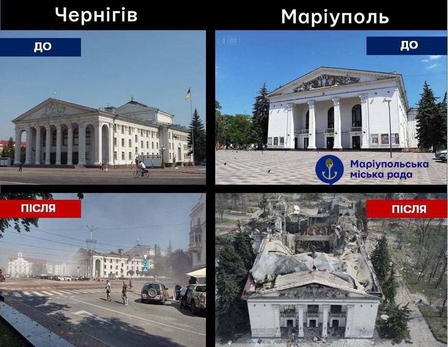 На жаль, напис "ДЕТИ" не зупинив окупантів і вони прицільно вдарили авіацією по драмтеатру