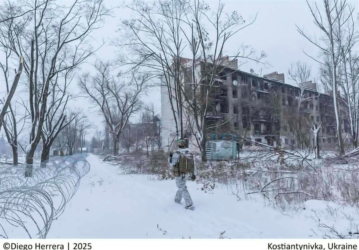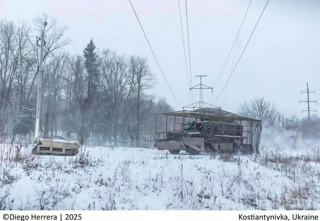 "Костянтинівка, близько 5 км від російських позицій. Місто, де два з половиною роки живу і знімаю війну. Дякуючи Олегу з 24 ОМБр імені короля Данила, я зміг потрапити до міста. Сьогодні це місто лежить в руїнах, а над його руїнами нависає страшний звук дронів. Вигорілі машини, збиті російськими FPV-дронами, засмічують вулиці.