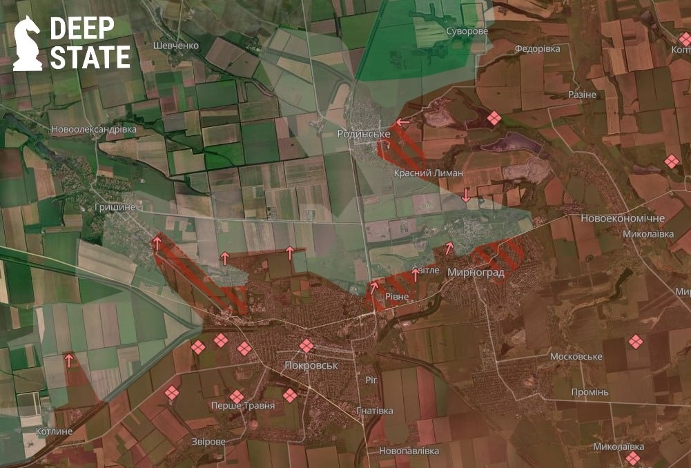 «Закріплення в цьому районі дає можливість противнику здійснювати накопичення для подальшого просування в глибину перешийку між Покровськом та Родинським, що збільшує ризик для залишків угруповання Сил Оборони на околицях Мирнограду», — кажуть аналітики.