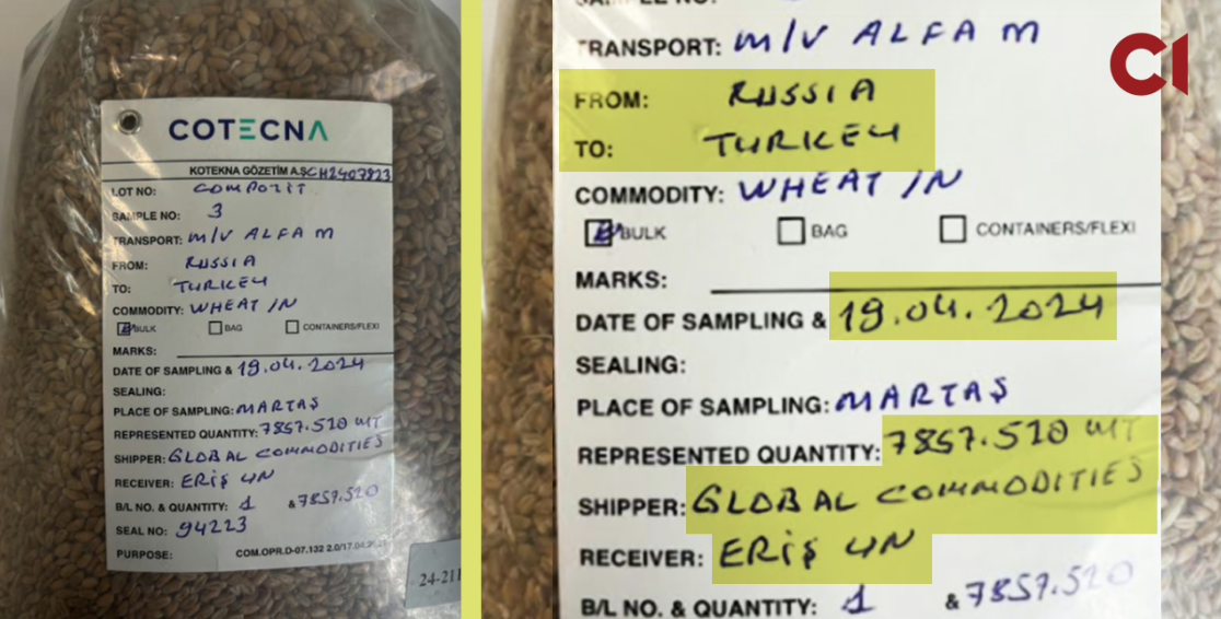 На підтвердження своїх слів інформатор надіслав «Слідству.Інфо» фото зразка, з яким працювали в українській лабораторії. Об'єм партії збігається до кілограма — 7,857 тонни. При цьому зразок, судячи з маркування, прибув до Одеси вже не з Маріуполя, а з Туреччини. Країною походження вказана Росія, дата — 19 квітня 2024 року.