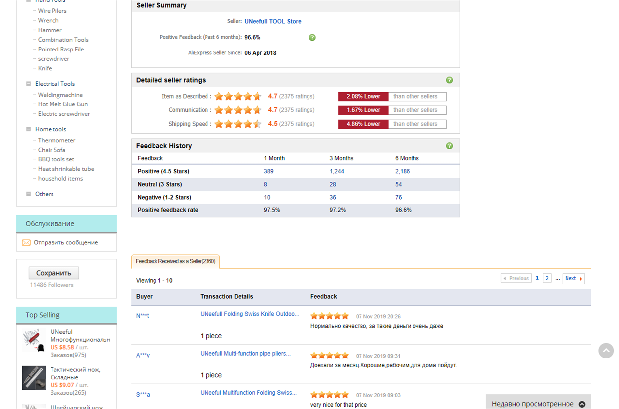 Обратите внимание на рейтинг продавца. Он рассчитывается на основе оценок, которые поставили продавцу клиенты. Ни продавец, ни администрация торговой площадки не могут изменить эти оценки. Поэтому чем выше рейтинг магазина, тем надежнее продавец по отзывам покупателей.