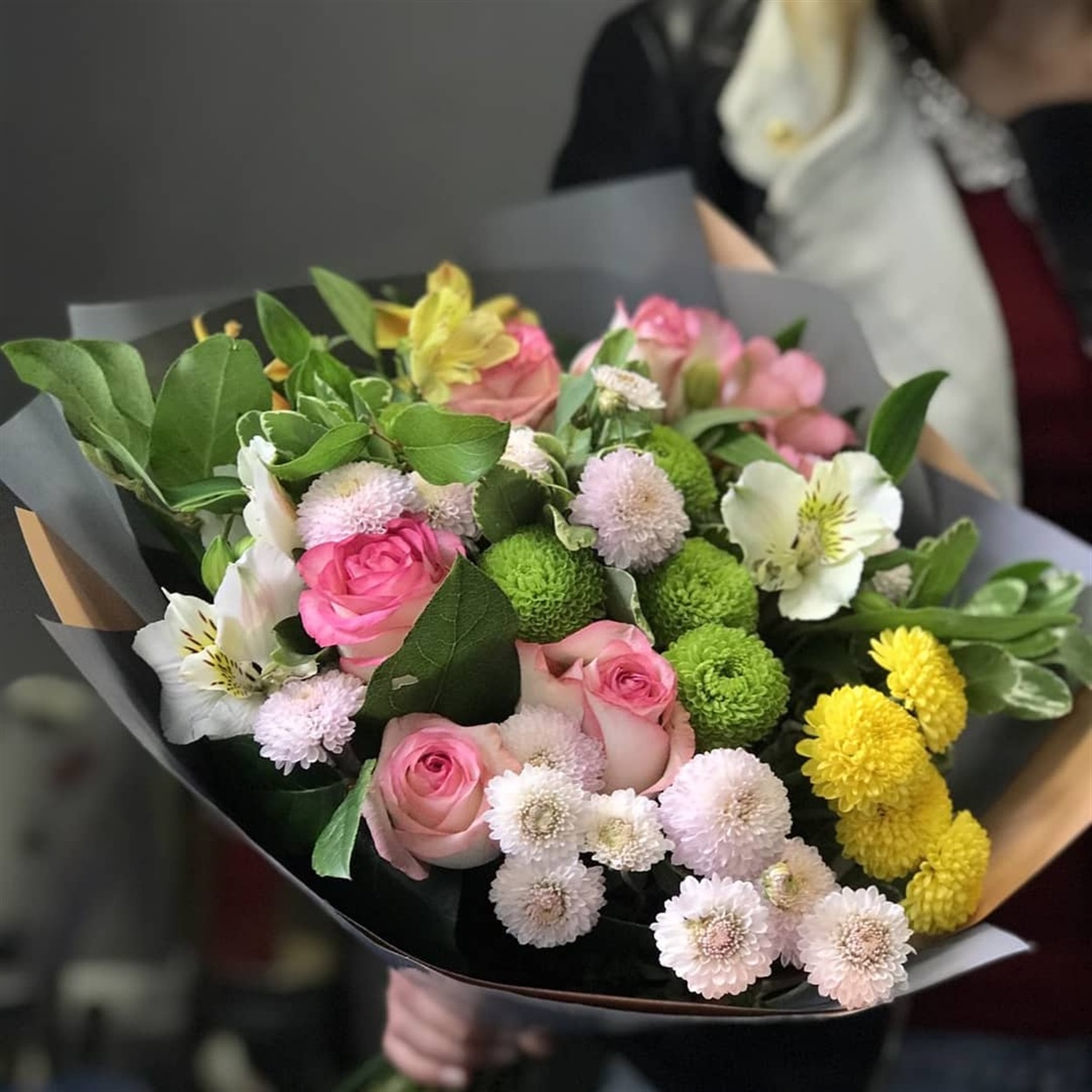 Благодаря своему опыту, флорист составляет различные праздничные букеты. Это могут быть как корейские букеты, свадебные букеты, так и композиции.