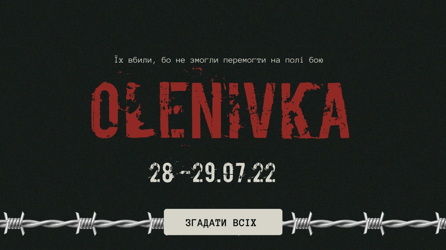 Свої спільно з платформою пам'яті Меморіал презентували спецпроєкт на річницю теракту в Оленівці, в рамках якого зібрали 10 історій загиблих азовців, ставших жертвами чергового воєнного злочину рф. Усі вони потрапили в російський полон у травні 2022 року, коли вийшли за наказом з комбінату "Азовсталь". Їхню безпеку гарантувала росія та різні міжнародні організації, в тому числі й Червоний Хрест. Цей проєкт про біль і тугу за найкращими синами України, які героїчно боронили життя інших людей, він про сльози батьків, дружин і дітей, які більше ніколи не побачать своїх рідних, бо їх вбила росія. Проєкт OLENIVKA буде оновлюватися новими іменами у списку загиблих, коли інші жертви будуть ідентифіковані.